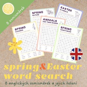 🐝Sada obsahuje osm anglických osmisměrek a jejich řešení , tematicky zaměřených na jaro a Velikonoce. Děti se hravou