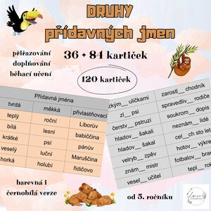 - 36 kartiček – 12 PJ tvrdá, 12 PJ měkká, 12 PJ přivlastňovací - 84 kartiček – doplnění i,í/y,ý - barevná x černobílá