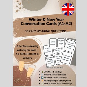 Tato sada konverzačních otázek v angličtině je určena pro žáky na úrovni A1–A2 a zaměřuje se na témata Vánoc, zimy