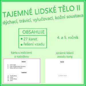 Originální a zajímavá aktivita slouží k souhrnnému zopakování dýchací, trávicí, vylučovací a kožní soustavy (jednotlivě)