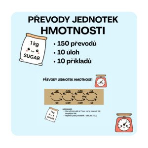 PŘEVODY JEDNOTEK - HMOTNOSTI převody, slovní úlohy, těžší příklady, edukační pomůcka na převody. ~ 150 příkladů od