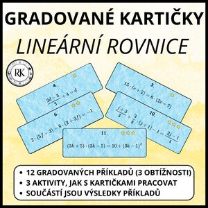 Vzdělávací materiál obsahuje 12 kartiček s gradovanými příklady na lineární rovnice a návrhy 3 aktivit, jak s kartičkami