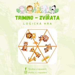 ✨ Trimino – zvířata ✨ Soubor obsahuje 6 sad trimina. Každé trimino funguje na principu trojúhelníkového domina: dítě
