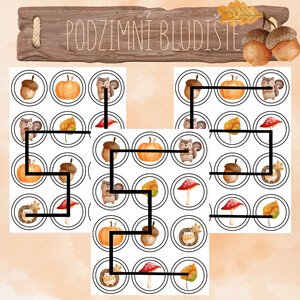 POHYBOVÉ BLUDIŠTĚ - PODZIM🦔🍂 Soubor obsahuje 7 různých plánků + obrázky určené na zem. Děti si prostřednictvím aktivity