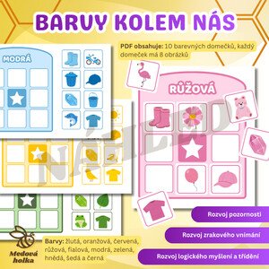 Materiál slouží k hravému upevňování znalosti barev a k rozvoji třídění. Každý „domeček“ představuje jednu barvu (žlutá