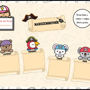 Karty s názvy měsíců s piráti k dopsání jména a data narozenin. 12 kartiček + nadpis využitelné k výzdobě třídy Návod