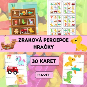 Zraková percepce – Hračky je vzdělávací materiál zaměřený na rozvoj zrakového vnímání, pozornosti k detailu, vizuální