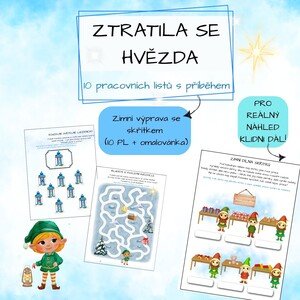 Vydejte se se skřítkem na zimní výpravu za ztracenou hvězdičkou! Soubor obsahuje 10 krásných pracovních listů, které na
