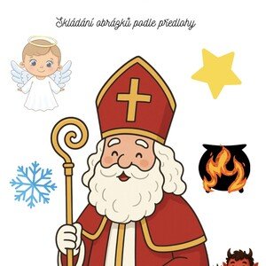 Soubor obsahuje kartičky a obrázky na téma Mikuláše. Děti skládají obrázky podle vzoru a tím si procvičují zrakové