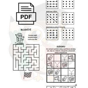 Soubor obsahuje: GIRLANDA - 2x A4 papír SPOJOVÁNÍ ČTVRTIN - 10x A4 papír HLEDÁNÍ DVOJIC POMOCÍ LUPY - 4x A4 papír