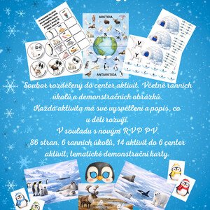 Soubor rozdělený do center aktivit. Včetně ranních úkolů a demonstračních obrázků. Každá aktivita má své vysvětlení a