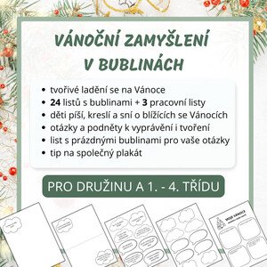 Předvánoční materiál plný otázek k zamyšlení, kreslení i psaní. Děti se ladí na Vánoce, sdílí svá přání, tradice i