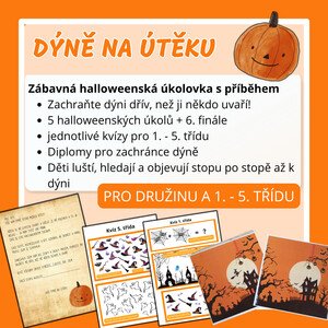 Zachraňte Dýni na útěku dřív, než skončí v polévce! 🎃 Halloweenská úkolovka pro děti z 1.–5. třídy plná zábavných úkolů