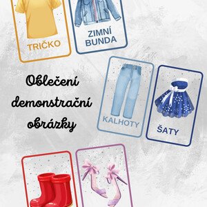 Tento soubor obsahuje 12 originálních, barevných demonstračních karet s motivy oblečení, které se skvěle hodí do výuky v