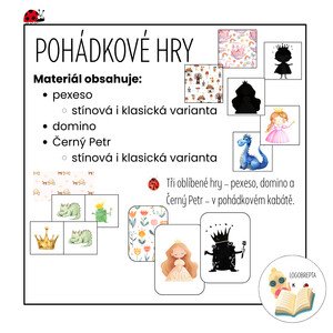 Tři oblíbené hry – pexeso, domino a Černý Petr – v pohádkovém kabátě.🧚👸 Materiál obsahuje: pexeso stínová i klasická
