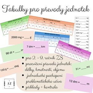 Tabulky určené k procvičení převádění jednotek objemu, hmotnosti a délky. Soubor obsahuje: - 4 tabulky (1x délka, 1x
