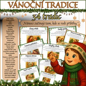 Děkuji Vám za zakoupení této sady vánočních tradic. Najdete v ní 34 ilustrovaných karet velikosti A5, které jsou ideální