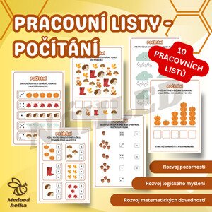 Tento soubor obsahuje 10 pracovních listů zaměřených na počítání od 1 do 6 na téma Podzim. Pracovní listy jsou vhodné