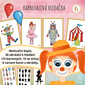 Karnevalová hledačka Obsahuje: motivační dopis, 30 obrázků k hledání (velikost A5) - 15 barevných, 15 se stíny, 6