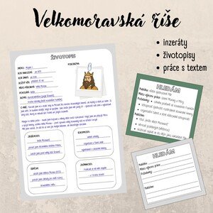 Soubor obsahuje: 6 inzerátů (“hledám někoho”) černobílá i barevná varianta 6 životopisů osobností Velké Moravy 12 tipů