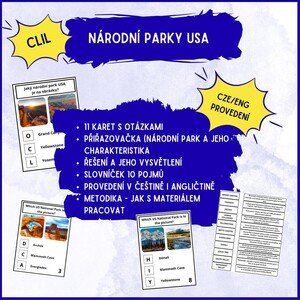 Národní parky USA – běhačka a přiřazovačka (CZ/EN) Materiál je vhodný do zeměpisu na 2. stupni, ale díky bilingvním