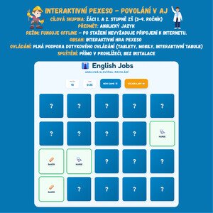 👔 Interaktivní pexeso: Jobs (Anglická povolání) Oživte výuku angličtiny moderní digitální hrou! Toto interaktivní pexeso