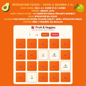Zde je krátké shrnutí aktivity určené pro prodejní platformy: 🍎 Pexeso: Fruit & Vegetables (English) Interaktivní