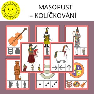 Materiál na téma masopust slouží k procvičení zrakového vnímání a počítání. Obsahuje 36 kartiček. Strany s kartičkami