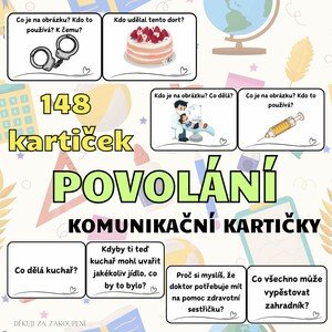Celkem 148 komunikačních kartiček: 64 barevných kartiček 84 černobílých kartiček 8 kartiček na dopsání vlastních otázek