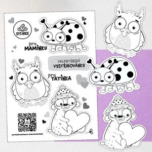 ♥ Valentýnské obrázky pro kreativní tvoření s dětmi.♥ ♥ Autorské ilustrace ♥ ♥ 1 strana A4 k tisku (C) Dythree