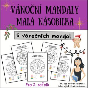 Popis materiálu: Tento materiál obsahuje 5 vánočních mandal. Každá mandala zahrnuje přibližně 20 - 30 příkladů na malou