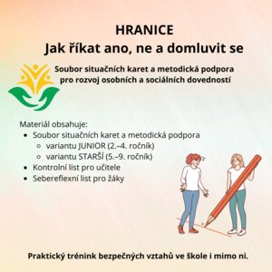 Materiál rozvíjí schopnost nastavovat osobní hranice, říkat „ne“ bez konfliktu a respektovat odmítnutí. Pomáhá žákům
