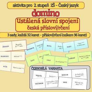 Tento materiál obsahuje hru typu DOMINO, kde si žáci procvičí USTÁLENÁ SLOVNÍ SPOJENÍ - přísloví a rčení. Co zde najdete