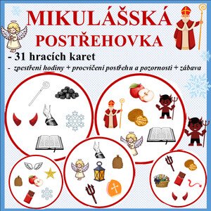 Materiál obsahuje 6 stran A4 s celkem 31 kartičkami na nichž je vždy 6 obrázků s mikulášskou tematikou. Hru využijí