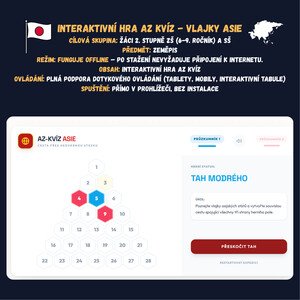 AZ-KVÍZ: Vlajky Asie Tato interaktivní hra (.html) je moderní pomůckou pro učitele zeměpisu a vlastivědy, která