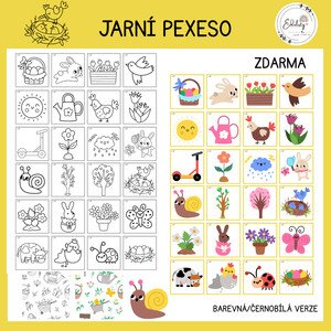 Jarní pexeso je hravý doplňkový materiál zaměřený na rozvoj paměti, pozornosti a slovní zásoby. Obsahuje tematické