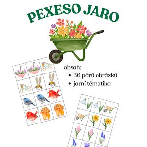 Soubor obsahuje jarní pexeso s veselými tematickými obrázky. Celkem 36 dvojic (72 kartiček). Kartičky lze tisknout