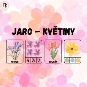 JARO - KVĚTINY MATERIÁL OBSAHUJE: 14 demonstračních karet jarních květin, kolíčkohraní s 8 kartami zaměřených na počty a