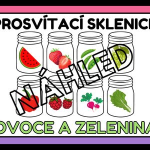 Do průhledných sklenic jsou vloženy obrázky ovoce a zeleniny. Sklenice se nasvítí baterkou, přes okno nebo se položí na