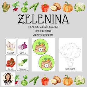 ZELENINA Soubor obsahuje: Demonstrační obrázky 28ks Kolíčkovaná10 karet Grafomotorika 12 A4 papírů (česnek, cibule