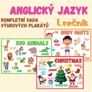 Kompletní sada výukových plakátů do anglického jazyka pro 1. ročník. Obsah plakátů: Greetings Colours Farm animals