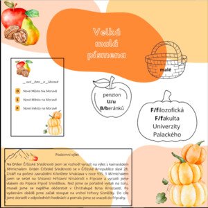 Materiál obsahuje: kartičky s košíky a ovocem běhací diktát s tajenkou doplňovací text řešení První materiál slouží k