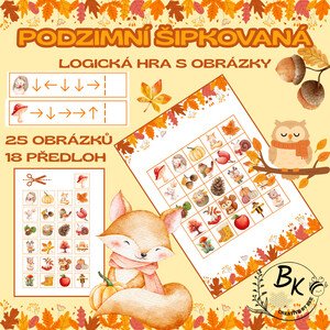 PODZIMNÍ ŠIPKOVANÁ - logická hra s obrázky Procvičte s dětmi logické myšlení, prostorovou orientaci a pozornost – hravou