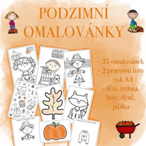 Tento soubor obsahuje 35 podzimních omalovánek a 2 pracovní listy. Najdete zde děti, zvířata, listy, dýně a jablka