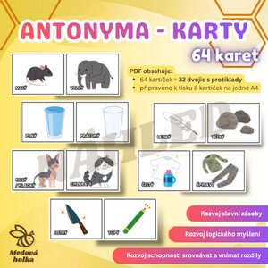 Tento materiál obsahuje sadu kartiček s antonymy - slovy, která mají opačný význam. Téma protikladů je pro děti velmi