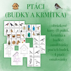 Tento soubor obsahuje obrázkové karty s 8 ptáky, budkami a krmítky. Dále zde naleznete omalovánky s ptačími budkami a s