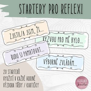 Materiál „20 starterů – začátky vět pro reflexi“ slouží k rozvoji sebehodnocení žáků. Umožňuje jim zamýšlet se nad