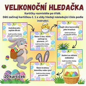 🐣 VELIKONOČNÍ HLEDAČKA DO TŘÍDY🐣 Zábavná pohybová a pátrací aktivita pro děti, která obsahuje 20 kartiček. Jak hra
