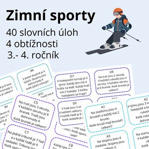 Soubor obsahuje 40 slovních úloh na násobilku s tematikou zimních her, rozdělených do čtyř úrovní obtížnosti. Úlohy jsou
