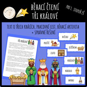 Běhací čtení – tři králové Materiál je určen pro žáky 1. stupně ZŠ a propojuje čtení s pohybovou aktivitou. Obsahuje